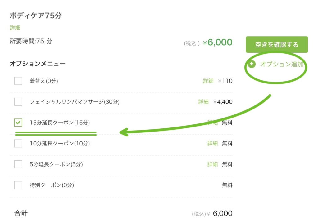「15分延長クーポン」を選択
